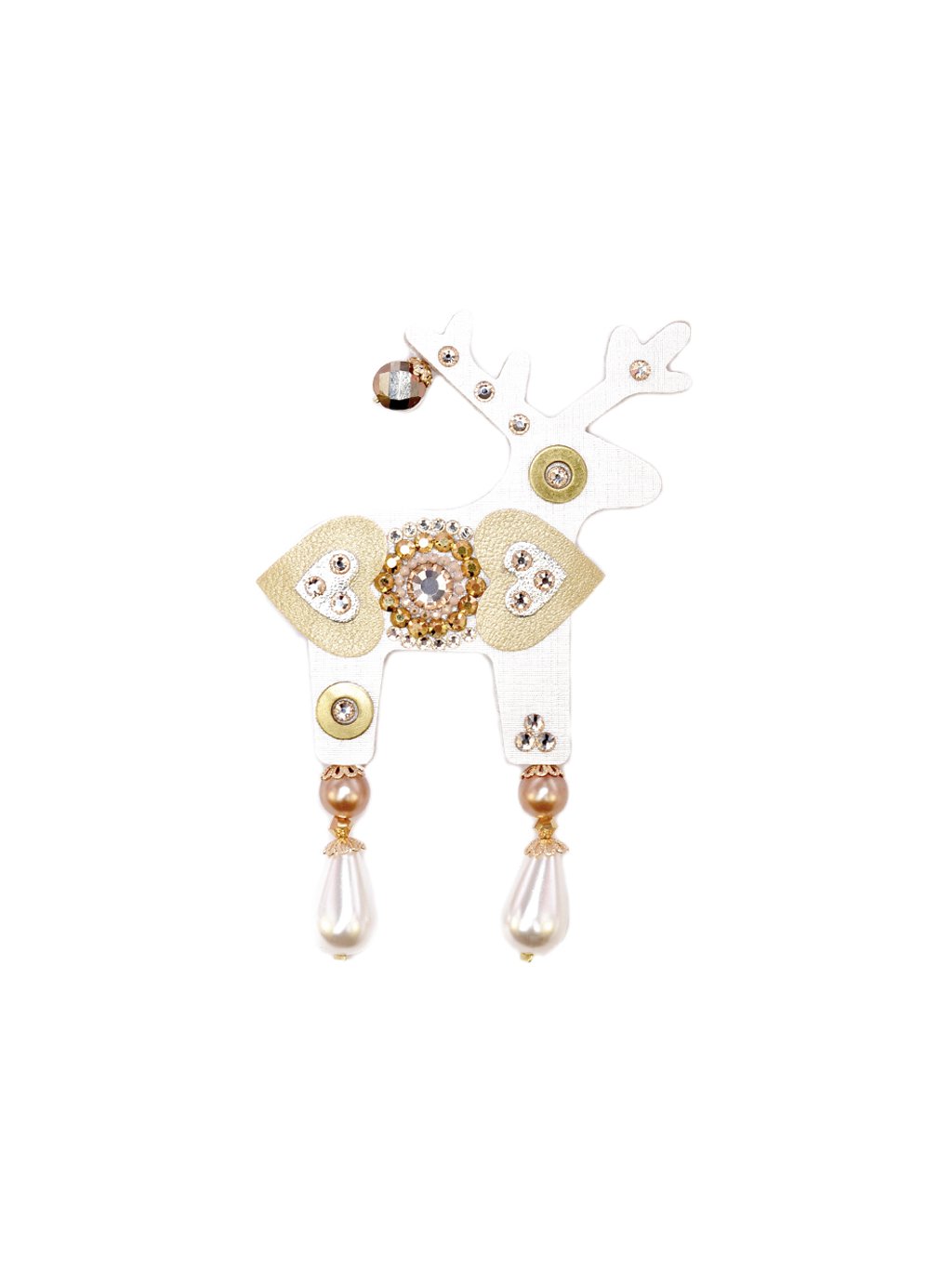 Svůj jelení kabátek dozdobila koženkovými srdíčky a broušenými kamínky od Preciosa Crystals.